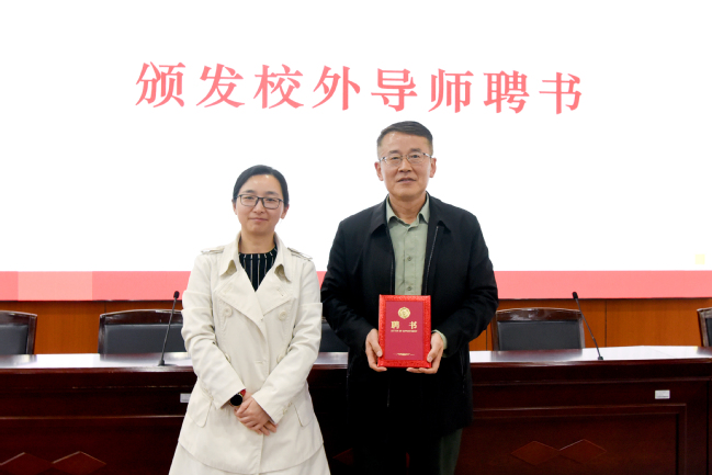 为深化校地合作、传承实践经验,现场举行了校外导师聘任仪式。周婷为吴建斌颁发“校外导师”聘书,希望为公司人才培养提供更丰富的资源和实践指导。