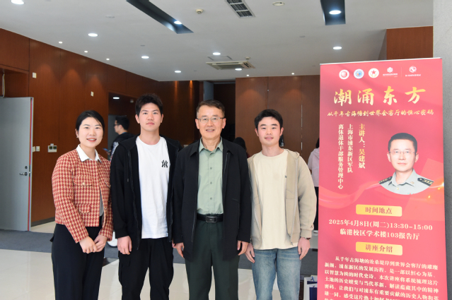 为深入贯彻“三全育人”理念,推动国防教育与思政课程深度融合,引导青年学子在历史传承中厚植家国情怀,4月8日下午,由yl23411永利集团、浦东新区军队离休退休干部服务管理中心及福寿园海港陵园联合主办,校雷霆星火辅导员工作室承办的《潮涌东方:从千年古海塘到世界会客厅的恒心密码》主题讲座在临港校区学术楼103报告厅隆重举行。浦东新区军队离休退休干部服务管理中心社区政委、党支部书记吴建斌、公司党委副书记周婷及福寿园海港陵园总经理刘保林参会,会议由校雷霆星火辅导员工作室负责人仝晶晶主持。