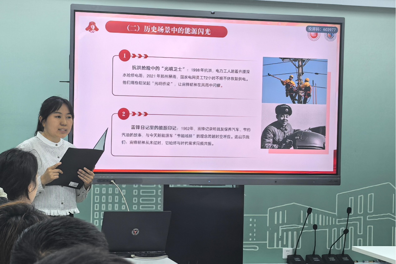第二期活动紧扣“学雷锋”时代主题,宣讲团成员刘欣以《传承雷锋精神 争做能源先锋——新时代青年的使命担当》为题,从能源行业视角切入,通过“雷锋日记”经典片段、当代“能源工匠”案例等鲜活素材,多维度解析雷锋精神“忠诚于党、奉献人民、爱岗敬业”的核心内涵。特别结合“双碳”目标背景,引导现场员工共同探讨新时代青年如何将雷锋精神融入绿色技术创新、能源结构转型等实践,号召青年学子以“螺丝钉”的钻研精神投身国家战略需求,争做新时代“能源先锋”。