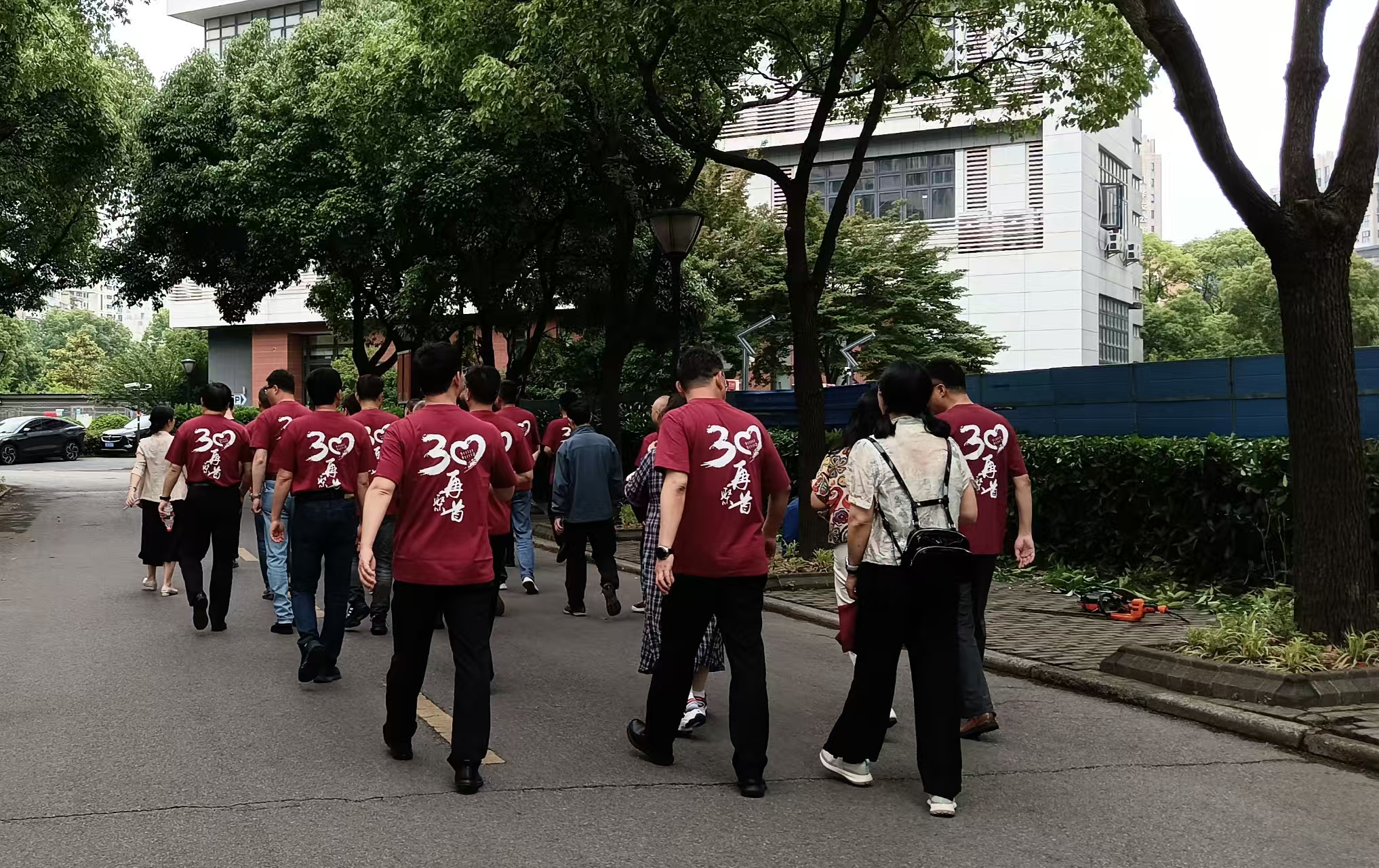 上午10时,员工们陆续抵达公司,身着统一纪念文化衫,在长阳路2588号杨浦校区门口前合影留念。随后,在志愿者的引导下,员工们参观了英华楼、图书馆、行政楼、教学楼、宿舍楼及奋进楼实验室。面对焕然一新的校园设施与科研成果展示,员工们感慨万千,纷纷赞叹母校在团队建设与技术创新上的飞速发展。漫步于曾经学习生活的地方,回忆当年的点滴时光,校园的一草一木勾起了员工们对青春岁月的无限怀念。