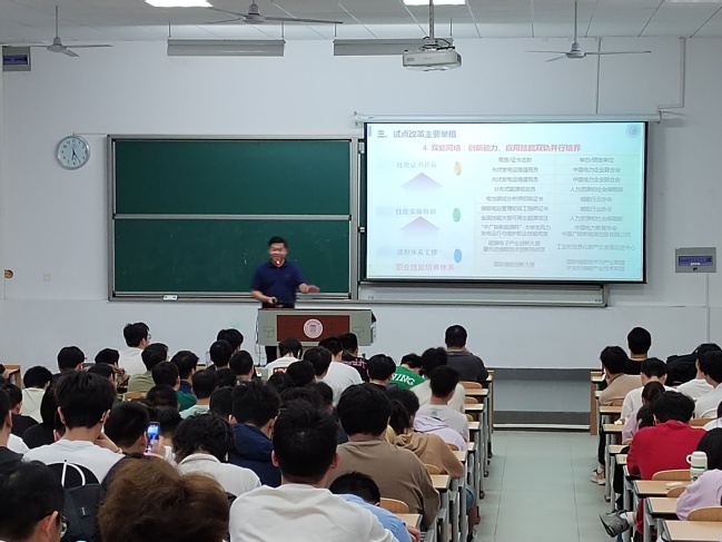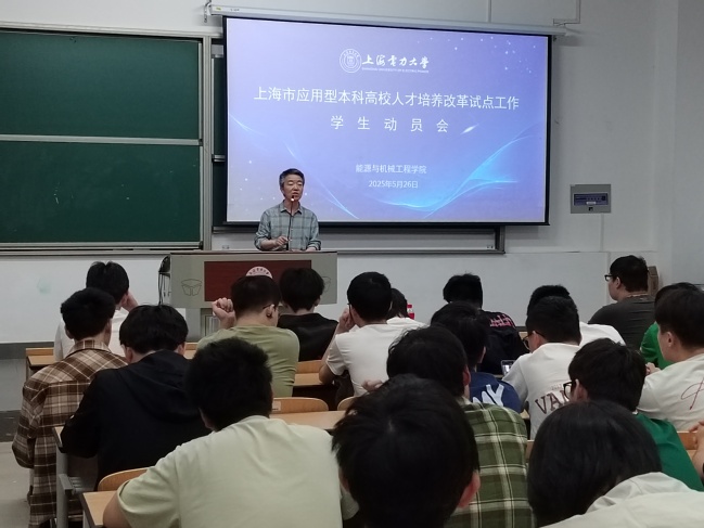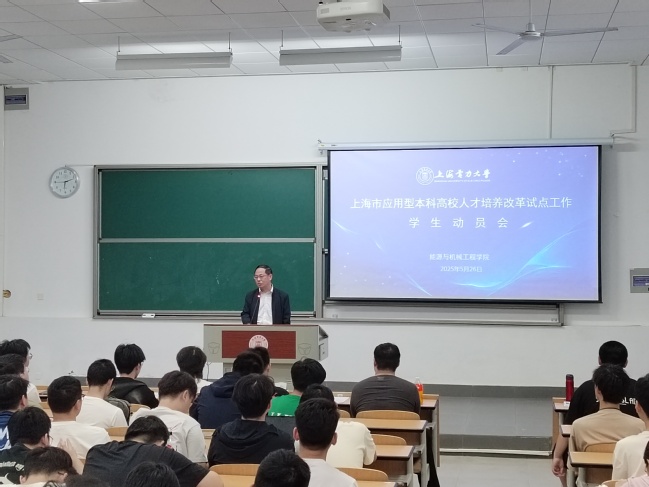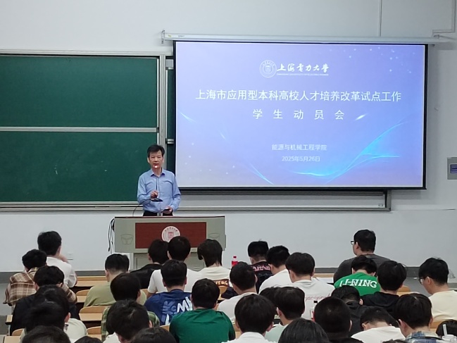 2025年5月26日18:00,yl23411永利集团在临港校区二教106教室召开上海市应用型本科高校人才培养改革试点工作员工动员会。本次会议面向新能源科学与工程、储能科学与工程专业大一至大三全体在校本科生,旨在深入解读改革政策、凝聚共识,推动高素质应用型人才培养。公司党委书记潘卫国、经理朱群志、副经理仇中柱、新能源工程系副主任姜未汀、储能科学与工程教研室主任闫霆出席会议。会议由公司党委副书记周婷主持。