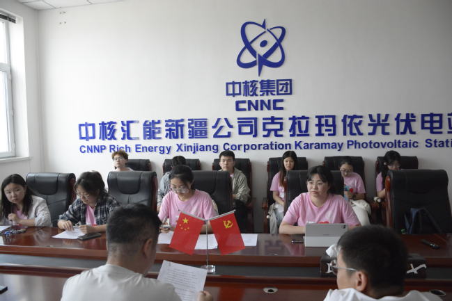 此外,实践队还参观了中核汇能新疆公司克拉玛依光伏电站,深入了解了光伏电站的运营模式、市场挑战及未来发展方向。
