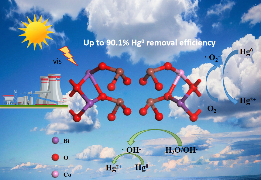 铋基材料在光催化氧化脱除重金属污染物方面具有广阔的应用前景,但由于其较短的载流子寿命、电子-空穴对易重组等原因,光催化效率并不理想。针对这一关键问题,该ESI高被引论文通过水热法成功制备了Co2+掺杂BiOIO3光催化剂,通过诱导氧空位提高了光催化剂的光催化活性。离子掺杂成功诱导了铋基光催化材料表面氧空位的产生,增强了界面电荷转移,强化了复合光催化材料对单质汞的催化氧化过程。同时,Co2+掺杂缩窄了BiOIO3的带隙,有利于光生电子-空穴对的激发,提高载流子的迁移率,增强了铋基材料的光催化活性。这项研究为烟气净化及离子改性铋基催化剂提供了新的探索方向。