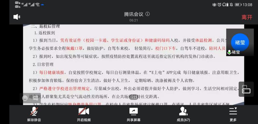 最后,结合上学期末的暑假作业,辅导员们分别根据不同年级和班级进行了学风建设、职业发展、校园生活等方面的答疑解惑,解决了同学们对返校标准及要求以及开学后的相关工作的疑问,如大二员工的补考、转专业考试和军训事宜,大三员工的考研动员和大四员工秋季招聘就业准备和职业技能提升、结合上学期期末成绩的学业预警、校园快递收取等学业和生活问题。