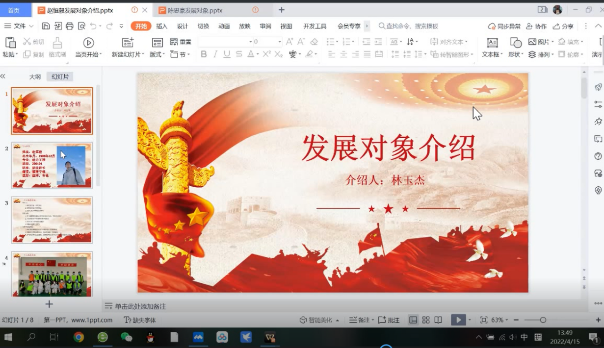 2022年4月15日,yl23411永利集团第三员工党支部,组织全体党员以及部分发展对象开展了线上组织生活,共7项议程:理论理论学习、互动答题、传经送宝、学习强国积分榜、家乡美、党小组汇报发展对象情况以及集体过政治生日。
