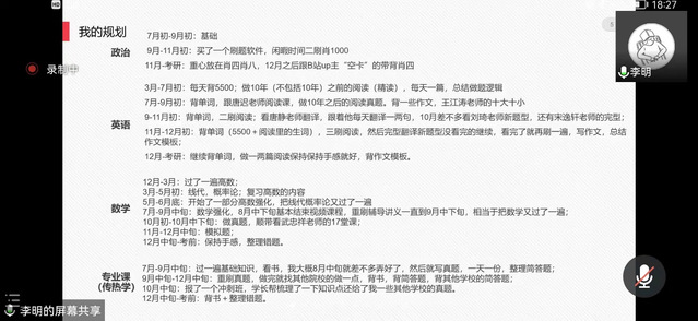 8名员工代表分别介绍了自己考研的基本情况,包括升入的公司、专业、分数以及备考这一年的心路历程,着重为同学们分门别类地讲述了备考的注意事项,不仅为同学们提供了考研的备考资料和建议,也为同学们列举了具体的应试方法。他们或用幽默的语言、或用恳切的话语叮嘱学弟学妹们首先一定要明确方向、坚定信心,以良好的精神面貌坚持到底、永不言弃;其次要合理规划时间,打牢基础,保持做题手感,找到适合自己的学习方法;同时也要注重心态,学会自我调适,适当放松并定期进行自我鼓励。