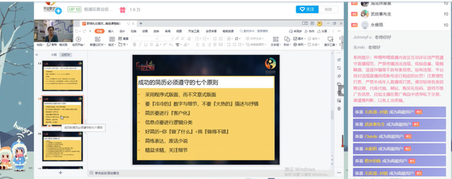 为切实提升员工就业能力和职场竞争力,帮助员工实现更高质量就业,yl23411永利集团于2022年9月13日通过Bilibili直播间组织开展主题为“简历在手,职达未来”的线上简历制作技巧专题讲座,讲座由杨浦区就业促进中心专家陈燕进行讲授,2019级员工进入直播间观看交流。