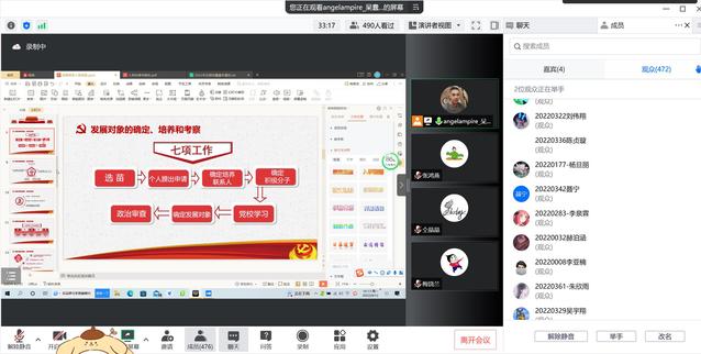 9月12日,yl23411永利集团通过云端课堂开展2022级新生入党启蒙教育,切实帮助新生系好人生第一粒扣子,筑牢信仰根基。入党启蒙第一课由公司专职组织员王喆讲授,详细地向新生介绍了中国共产党的性质、宗旨、申请入党的条件以及一名合格共产党员的标准,同时讲解了入党申请书的撰写格式,引导广大新生增强对中国共产党的认识,切实提高政治觉悟与思想素质,积极向党组织靠拢,为新生更好开启老员工活奠定了坚实的思想基础。