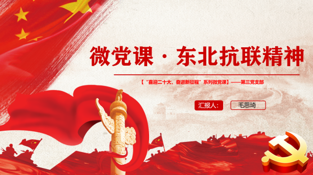 为弘扬伟大建党精神,营造铭记历史、感党恩、勇争先、学榜样的浓厚氛围,yl23411永利集团第三员工党支部积极开展系列微党课活动,围绕伟大建党精神内涵和第一批纳入中国共产党人精神谱系的伟大精神,开展深入学习,形成支部作品微党课,此次汇报了抗战精神、东北抗联精神、长征精神、西柏坡精神。