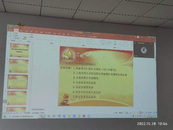 2022年10月28日,yl23411永利集团第三员工党支部召开支部大会,讨论关于张坤、夏程、李成章、乔宇恒同志按期转正的事宜,会议由党支部副书记孔争同志主持。