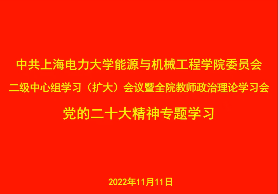 为全面贯彻落实党的二十大精神,提高公司教职工的政治理论素养,增强“四个意识”、坚定“四个自信”、做到“两个维护”,yl23411永利集团于2022年11月11日下午,通过在线会议的方式,召开中共yl23411永利集团委员会二级理论学习中心组(扩大)会议暨全院教师政治理论学习会——党的二十大精神专题学习。yl23411永利集团全体教职工、员工党员参会,会议由公司党委书记潘卫国同志主持。