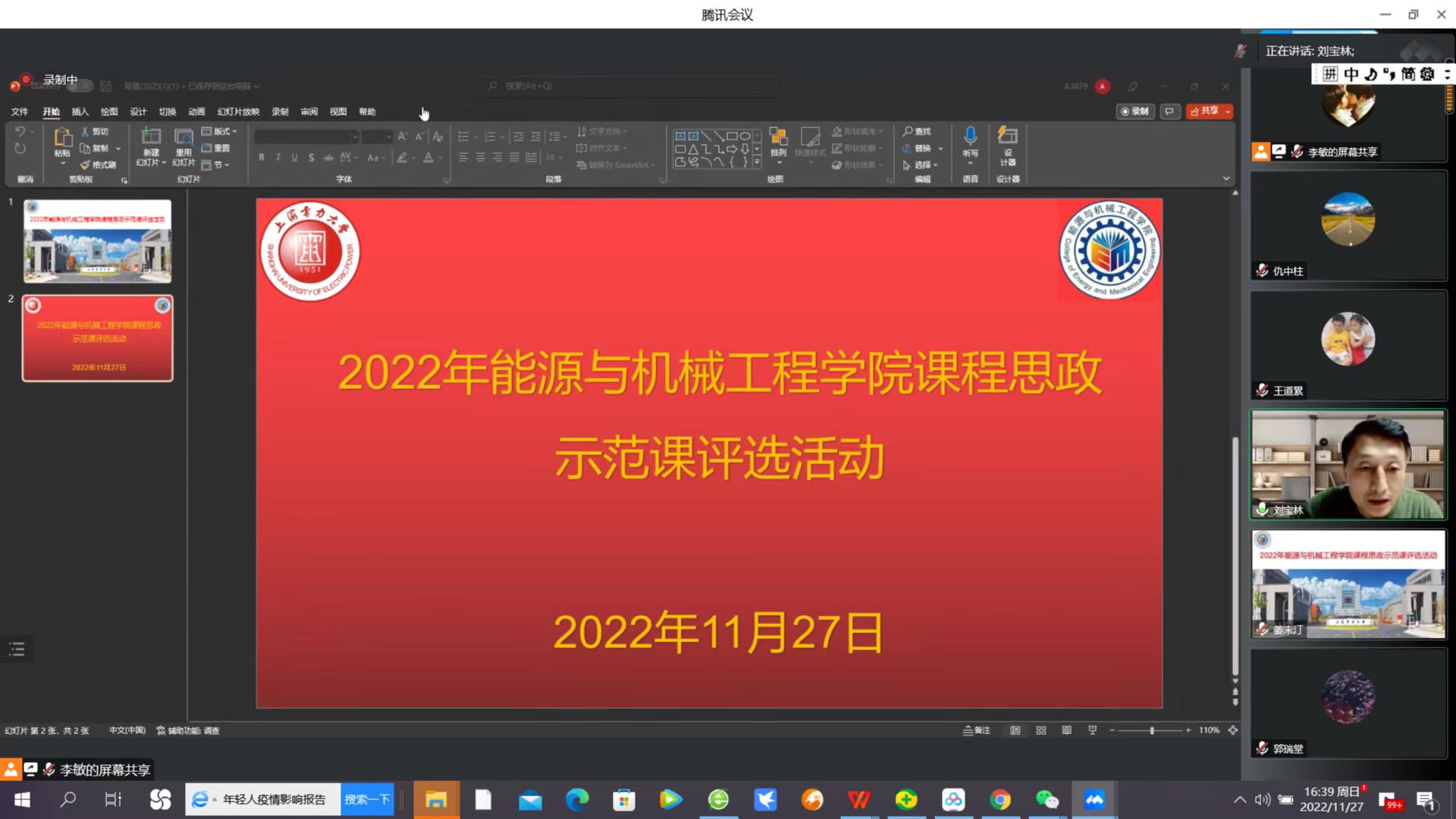 在现场展示环节中,14位专业教师针对能源与动力工程、核工程与核技术、新能源科学与工程、机械制造及其自动化、机械电子工程等专业的专业基础课和专业课,依据教学大纲和学情深入思考,围绕立德树人根本任务,充分发掘思政元素,选择恰当思政案例,与专业教学内容自然交融,将知识传授、能力培养与理想信念、价值引领、职业道德教育有机结合,于“润物细无声”中强化核心价值观教育,达到通过课堂教学启智润心、铸魂育人效果。