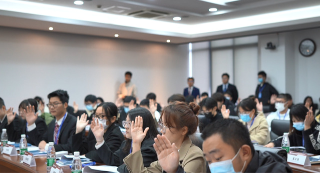 正式会议在庄严而肃穆的国歌声中拉开了序幕,周长长代表校团委向大会致辞。他表示,当代青年生逢其时,施展才干得舞台无比广阔,实现梦想的前景无比光明,本次员工代表大会的开展不仅是yl23411永利集团全体同学政治生活中具有重要意义的大事,也是公司基层员工组织建设的标志性事件之一。周长长充分肯定了公司一年以来员工工作所取得得重大成果,同时对全院同学提出三点希望:一是自觉担当尽责,始终成为服务大厅的中间位置。二是心系广大同学,始终成为联系青年的桥梁纽带。三是牢记国之大事,始终成为上电青年的先锋代表。希望每位同学能够做有理想、敢担当、能吃苦、肯奋斗的新时代好青年,让青春在全面建设社会主义现代化国家的火热实践中绽放绚丽之花。