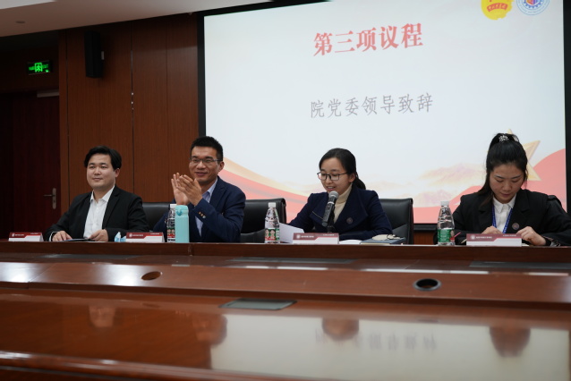 公司原员工会主席团成员马思琦以《<不忘跟党初心,勇担青春使命>——深入学习贯彻党的二十大精神,带领全院学子绽放青春之光》为主题向大会做员工会工作报告。