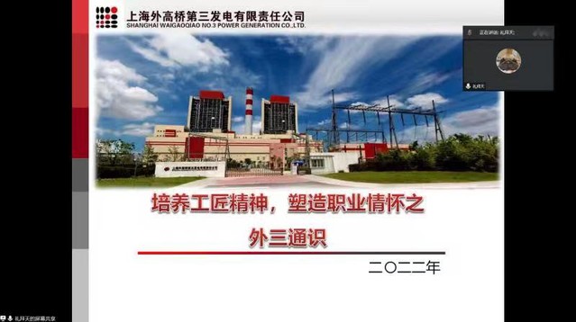 2022年12月13日下午13:30,yl23411永利集团邀请外高桥第三发电厂企业内训师周曰工程师通过线上方式开展了一次入员工涯教育讲座,主题为“培养工匠精神,塑造职业情怀”,公司2022级全体新生参加。