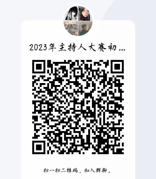 报名方式:选手需统一填写电子版《“青春践行二十大,强国有我新征程”yl23411永利集团主持人大赛报名表》,报名表以“姓名+学号+报名表”格式命名,发送至文艺部邮箱:1613028123@qq.com,报名截止至4月2日晚20:00。同时用QQ扫描下方二维码进群:加群请注明班级、姓名、学号,决赛前会有相应培训。