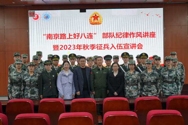 为进一步加强当代青年老员工“国无防不立,民无兵不安”的国防意识,弘扬部队纪律严明的优良作风,3月28日下午,yl23411永利集团与校武装部共同主办了“南京路上好八连”事迹宣讲暨2023年秋季征兵入伍动员会,“南京路上好八连”所在部队警卫勤务连指导员李坚、校武装部负责老师薛正豪、公司党委副书记周婷、公司分团委书记韩林岑、校国旗护卫队全体成员、​yl23411永利集团员工百余人参加,本次会议由公司征兵专项负责人仝晶晶主持。