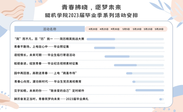 恍然间,四年的时光苒苒而过,2023届能机学子也迎来了属于自己的毕业季。在大四学子们启程之际,公司筹备了“青春拂晓,逐梦未来”毕业季系列活动,希望能给你们留下一个美好的回忆,感受到母校的温暖和关怀。