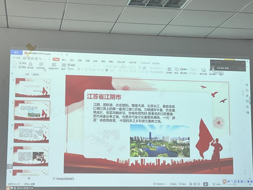 本次家乡红色文化由夏程、孙雪进行分享。夏程主要从红色文化和红色景点两方面介绍了江苏省江阴市,展现了江阴市红色文化的独特魅力;通过对这些红色文化深入挖掘和研究,不仅有利于丰富和完善党在江阴市留下的不可磨灭的光辉印记,更有利于丰富建构更为完善的红色革命基因和历史图景。面向新时代,我们要传承红色基因,弘扬党的优良传统与革命精神,培育社会主义核心价值观,凝聚起团结奋进的强大精神力量。