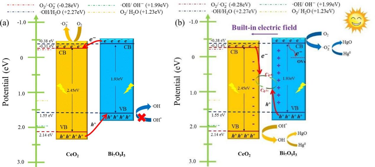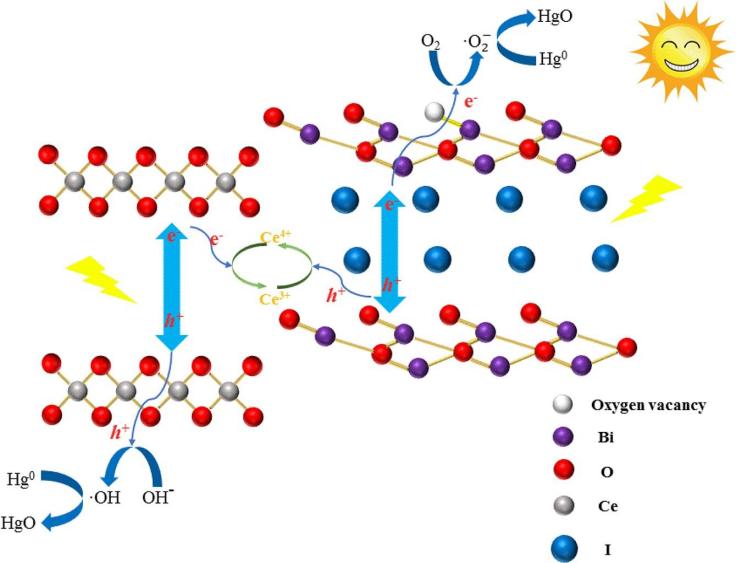根据最新ESI数据库更新情况,yl23411永利集团吴江教授重金属污染控制实验室于2022年1月在高水平国际期刊《Chemical Engineering Journal》 (SCI一区顶级,IF:16.744)上发表的论文”Rational design of CeO2/Bi7O9I3 flower-like nanosphere with Z-scheme heterojunction and oxygen vacancy for enhancing photocatalytic activity” (DOI:10.1016/j.cej.2021.133254)入选ESI高被引论文。论文第一作者为2019级硕士研究生刘国龙,通讯作者为吴江教授。促进电子转移和保留具有高氧化还原性能的光生载流子对净化光催化反应中的污染物具有重要意义。该研究通过溶剂热法巧妙设计并合成了具有Z型异质结和氧空位的CeO2/Bi7O9I3花状纳米球,用于光催化深度净化烟气汞。丰富的氧空位缺陷可以作为电子陷阱加速电子转移。CeO2与Bi7O9I3之间形成内建电场,为载流子分离及迁移提供内在驱动力,使光电子沿Z-scheme路径转移。Z型异质结和氧空位的双重作用显著不仅促进了电子转移,还保留了具有高氧化还原能力的载流子,使得CeO2/Bi7O9I3光催化剂具有优异的光催化氧化Hg0性能。这项工作为开发具有Z型异质结和氧空位的光催化剂提供了新的方向。