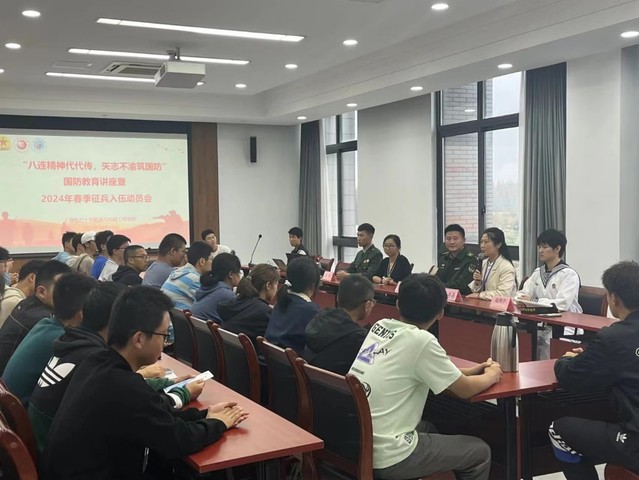 仝晶晶从全国、上海市、公司等不同的层面就2024年春季征兵的相关政策展开了具体的介绍和答疑,让同学们从学习考研、经济待遇、求职就业等方面更加深入了解到了征兵入伍的优势。建议有参军入伍意愿的同学们要尽早做好相关准备,日常注意锻炼身体,为国防建设奉献出属于自己的光和热。