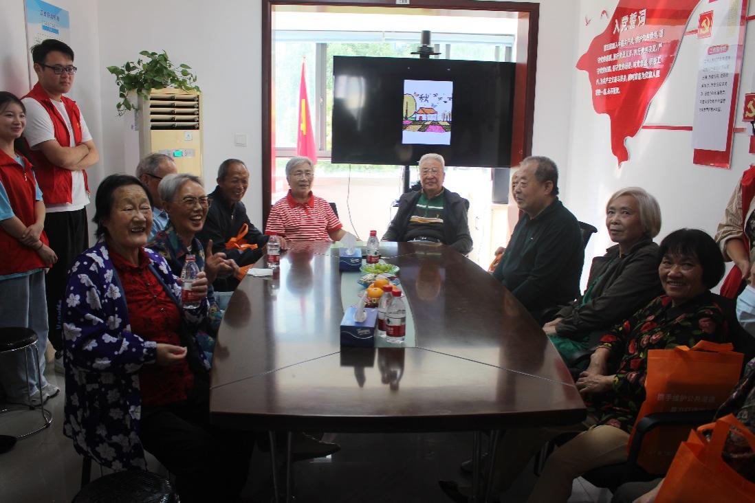 其次是暖心茶话会,志愿者们陪同长者们开始了气氛温馨的茶话会,老人们谈古论今话期待,志愿者们洗耳恭听学经验。老人们与居委工作人员以及年轻一辈的校园志愿者们度过一个温馨暖心的时光。通过轻松愉快的新老对话,我们从前辈的往事和经历中,感受到祖国的发展和繁荣,也学习了宜浩佳园二居委优秀的家庭和社区文化。