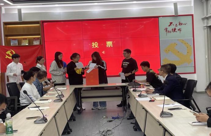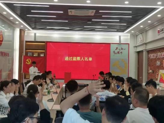 接着,毛思琦同志宣读了选举办法、监票人名单、计票人名单以及下届党支部委员会委员候选名单,全体党员举手表决,全票通过。由陆俊桦同志监票,罗添同志、娄中发同志计票。
