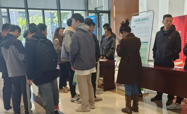宣讲会结束后,相关企业在学术楼一楼大厅,对员工提供进一步的企业咨询并开展深入交流。