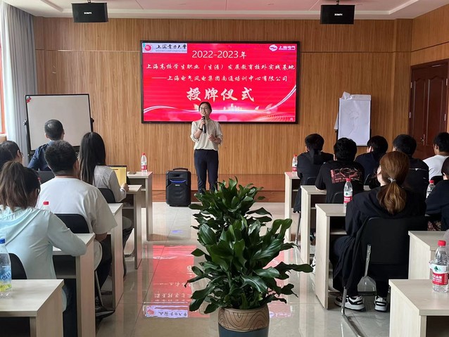 参观结束后,授牌仪式正式开始。周婷为上海电气风电集团南通培训中心有限公司授牌,宣布yl23411永利集团-上海电气风电集团南通培训中心有限公司员工职业(生涯)发展教育校外实践基地挂牌成立。