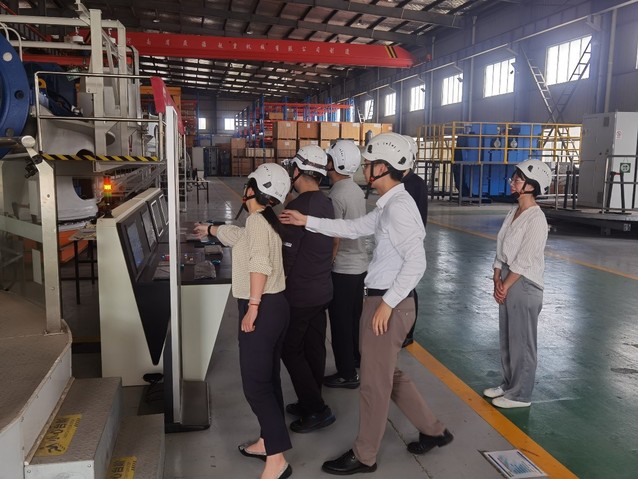 在忻健敏总经理的陪同下,yl23411永利集团师生一行到访南通培训中心实操基地并参观交流,深入了解了上海电气风电发电运行机制。围绕风力发电的主要原理,汤彬向yl23411永利集团各位老师及员工全面介绍了风机主要设备,即半直驱发电机组,近距离观察了风机的发电机、轮毂、齿轮箱、联轴器、变压器等核心发电设备。此外,还结合应用场景,为师生们解读了风力发电运行机制及运营管理模式,为师生们更详细地了解风力发电企业提供了窗口。