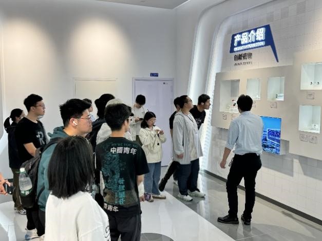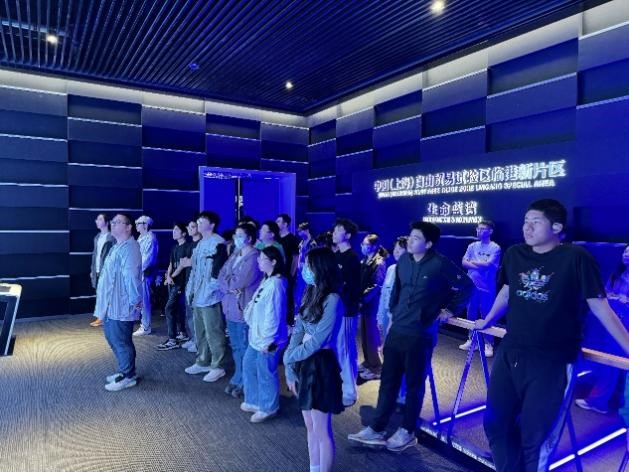随后,师生们来到了上海临港新片区生命蓝湾展厅进行参观,了解上海自由贸易试验区生命蓝湾的重要地理位置、主要的入驻企业及其研究领域。展厅内摆放的诸多在生物医疗领域的先进科研成果,引起同学们的驻足关注。