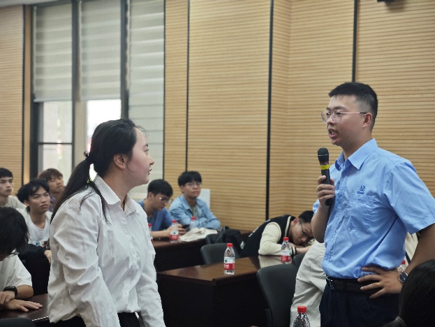 交流环节中,对于高年级员工关心的实习、就业等相关问题,沈宏辉详细介绍了秦山核电丰富的职能部门、详细的晋升规则以及员工的福利建设等,并表示欢迎新一代的年轻人能够加入我国的核电事业当中来。