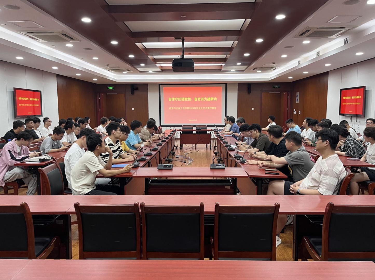 与会党员共同重温入党誓词,2024届毕业生党员离校教育圆满结束。