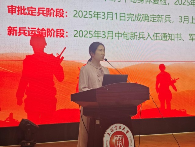 仝晶晶介绍公司征兵工作,详细解读了毕业生入伍的相关政策,号召同学们积极响应党和国家号召,应征入伍、兴国安邦,在军营中书写绚烂、无悔的青春篇章。