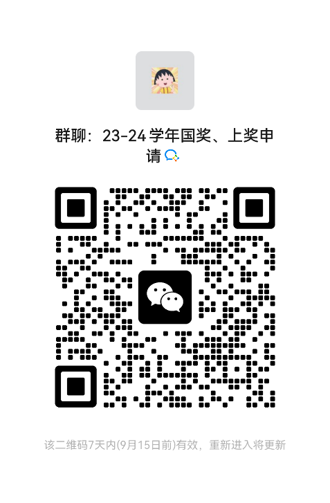 符合申请国家奖学金、上海市奖学金的同学需进行答辩,答辩时间初步定在9月18日,若时间有调整,另行通知。请申请同学进群(申请国励的同学不需进群)。