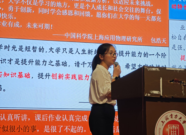 储能科学与工程专业魏子茜代表新生发言。她表示,作为新一时代青年不仅要学知识长本领,更要牢记使命,自强不息,向优秀的前辈看齐,与时光作伴,听世纪回响,书写时代新青年的辉煌。山高路远,但见风光无限;跋山涉水,不改一往无前。