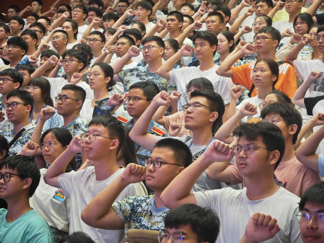 新生宣誓环节,新能源科学与工程专业张博禛作为代表领誓,“诚信为本,精勤为学,追求卓越,坚定理想信念,锤炼高尚品格,坚守家国情怀,练就过硬本领,担当时代重任,为电力强国梦而奋斗终身!”2024级全体新生庄严宣誓,铿锵有力、慷慨激昂的宣誓在会场中中久久回响。