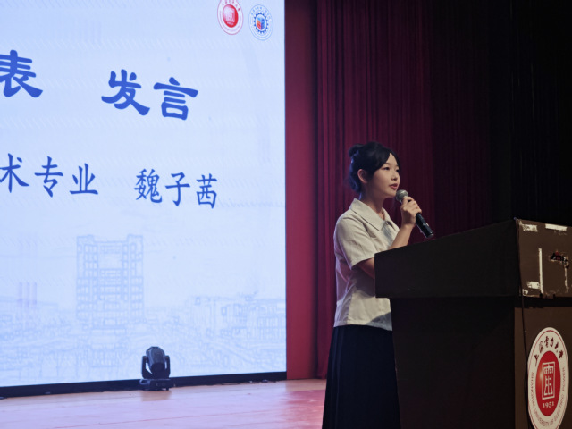 机械设计制造及其自动化专业吴炳晖作为班导师代表发言,向来自全国各地的本科生新生表示热烈欢迎。她以大学学习为切入点,鼓励新生敢于探索、勇于创新,寄语同学们要志存高远、脚踏实地,在学习中挑战自我、追求卓越,练就过硬本领,成为一名堪当民族复兴大任的时代新人。