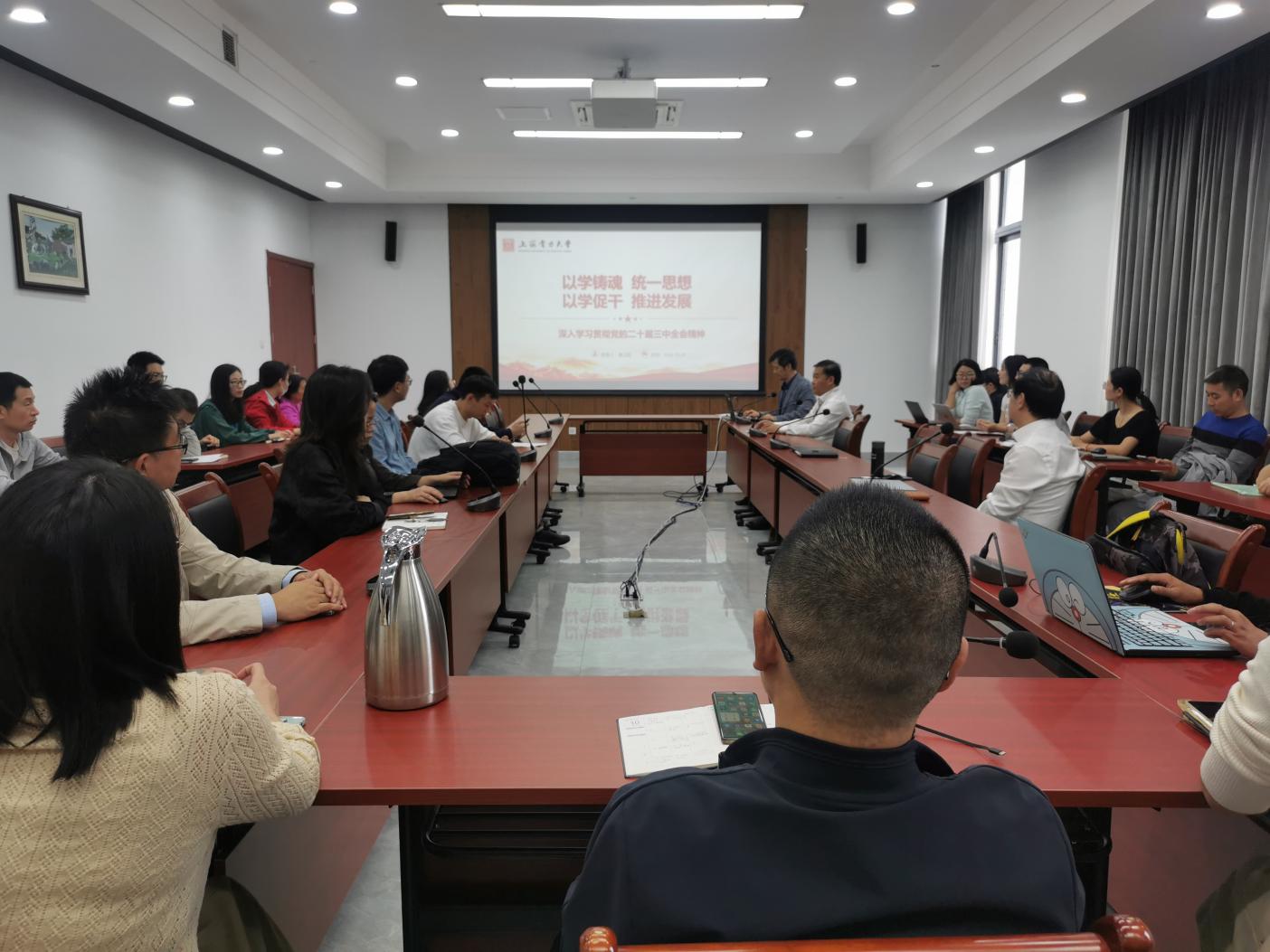 2024年10月25日,能机学公司党委书记潘卫国在学术楼307会议室为全体教职工上了一堂生动的专题党课,围绕学习党的二十届三中全会精神展开深入解读,并结合当前能源电力发展、科教兴国战略以及公司高质量发展等多个方面进行讲解。