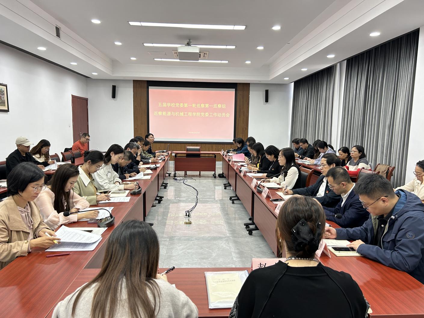 2024年10月29日下午,五届公司党委第一轮巡察第一巡察组巡察公司党委工作动员会在临港校区学术楼307会议室举行。五届公司党委第一轮巡察第一巡察组全体成员、公司党政班子及其他教师代表50余人出席。公司党委组织部、巡察办等相关部门人员列席会议。会议由公司党委书记潘卫国主持。