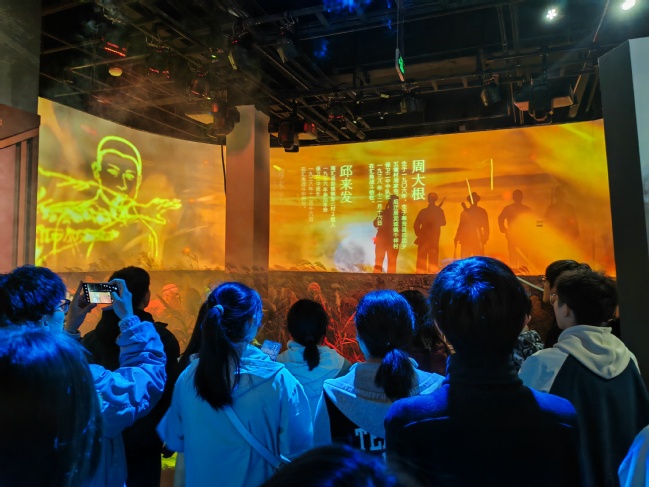 在红色泥城主题馆,师生们像通过历史图片、实物展品和场景复原,系统学习了泥城地区从五四运动到解放战争时期的革命斗争史。特别是1938年在“汇角血战”中,以周大根为代表的28名中华儿女,为了抗日救国的理想,英勇地献出了自己宝贵的生命,他们的故事无不让在场师生们动容。2023级新能源科学与工程专业员工司晨悦表示:“这些年轻的生命用热血诠释了信仰的力量,我们新时代青年更应珍惜来之不易的和平。”